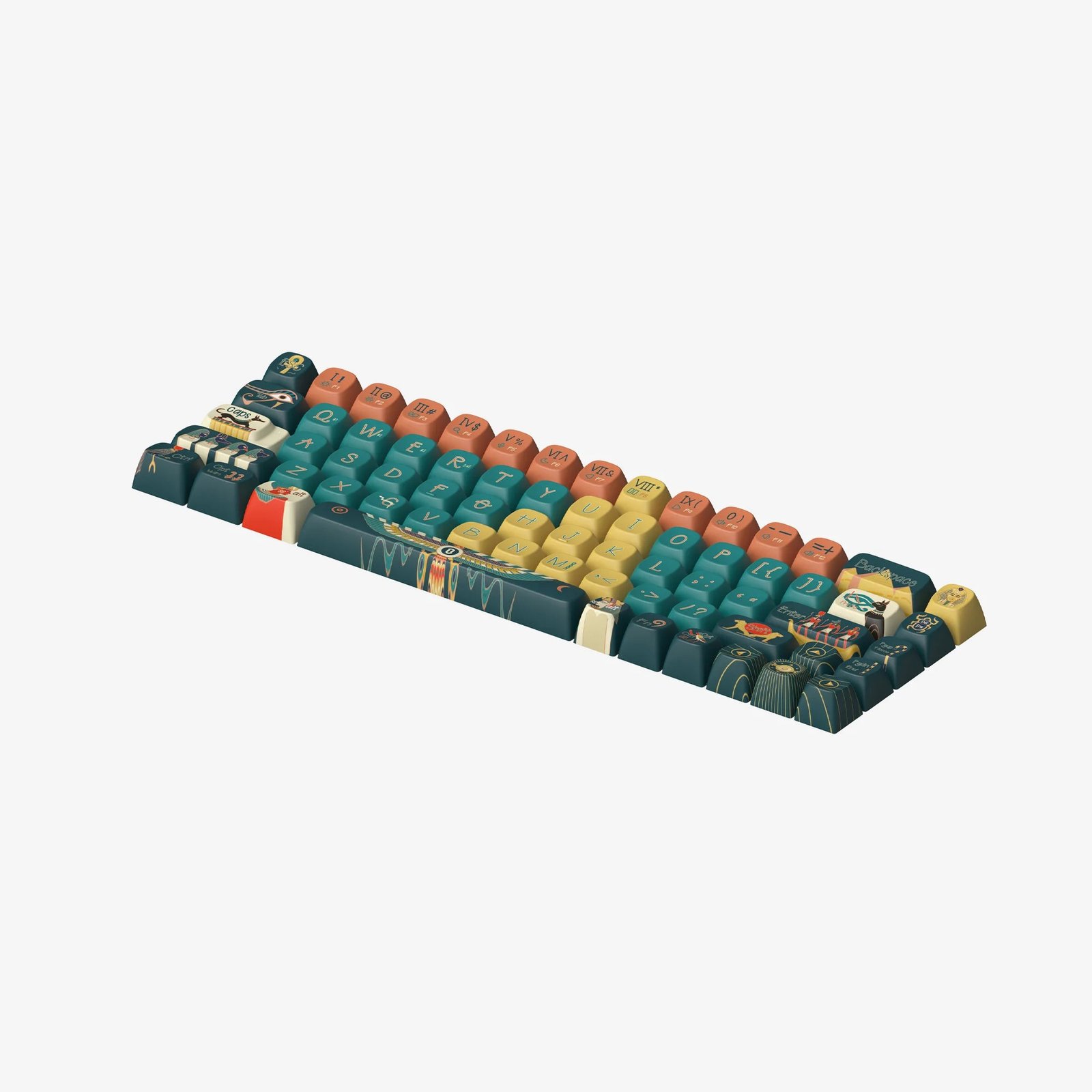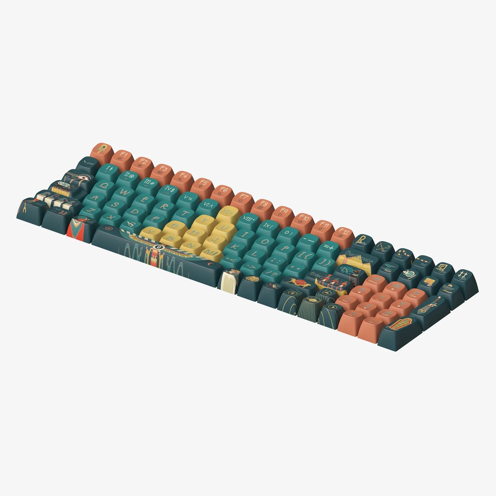 Explore the grandeur of ancient Egypt with our “Pharaoh” keycaps. Adorned with images of enigmatic pyramids and exquisite temple frescoes, the set of keycap is a tribute to the splendor of a civilization defined by its architectural and artistic achievements. These keycaps bring the essence of ancient Egyptian power and beauty right to your fingertips.