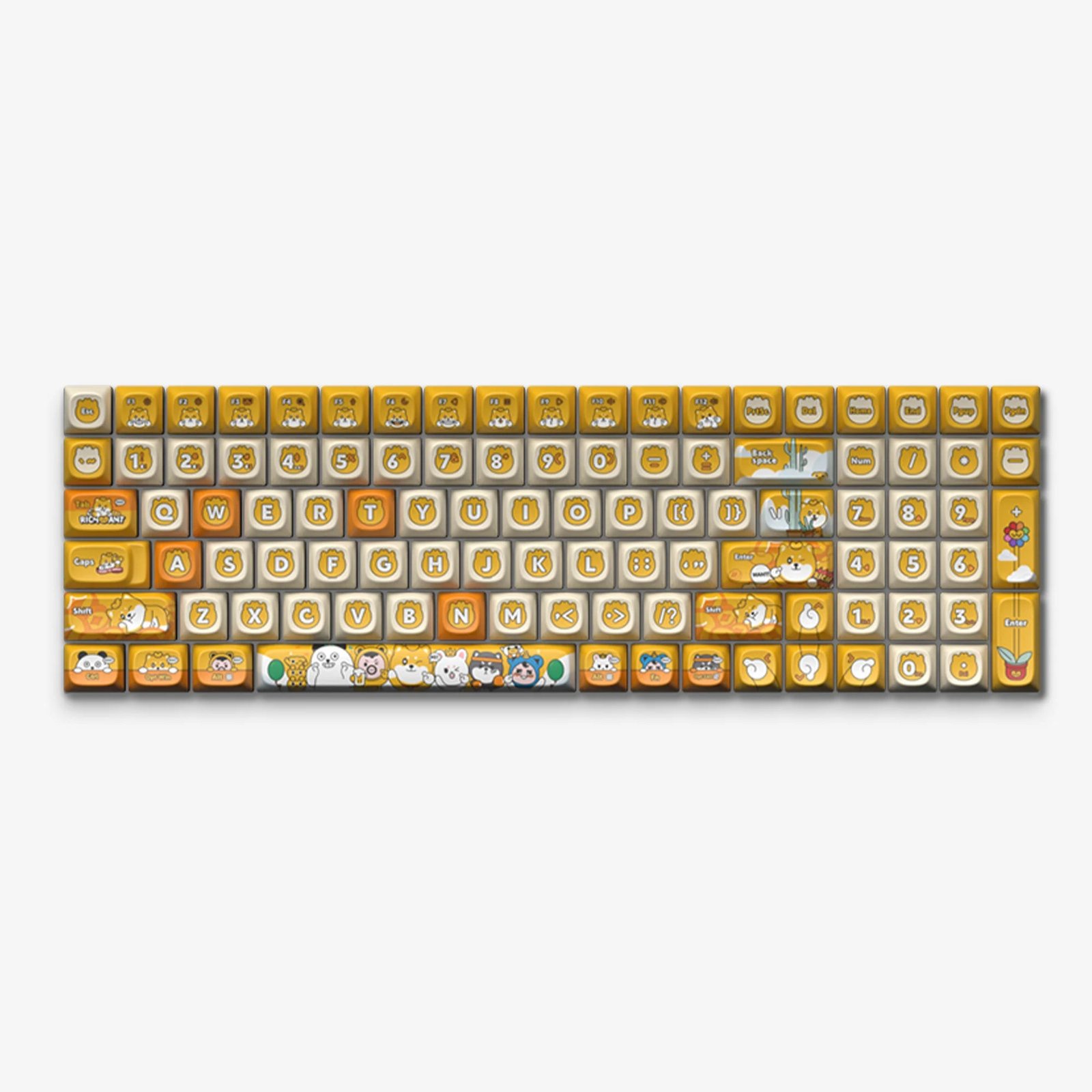 Inspired by the beloved character Wang Cai Zhu from the Chinese original animation IP RICHWANT—whose name signifies wishes of prosperity—these keycaps embody the spirit of bringing good fortune. Wang Cai Zhu descends to earth with his companions, spreading luck and healing hearts with his enchanting smile. Each keycap is a token of joy, designed to deliver not just luck but also a touch of whimsy to your everyday typing experience.