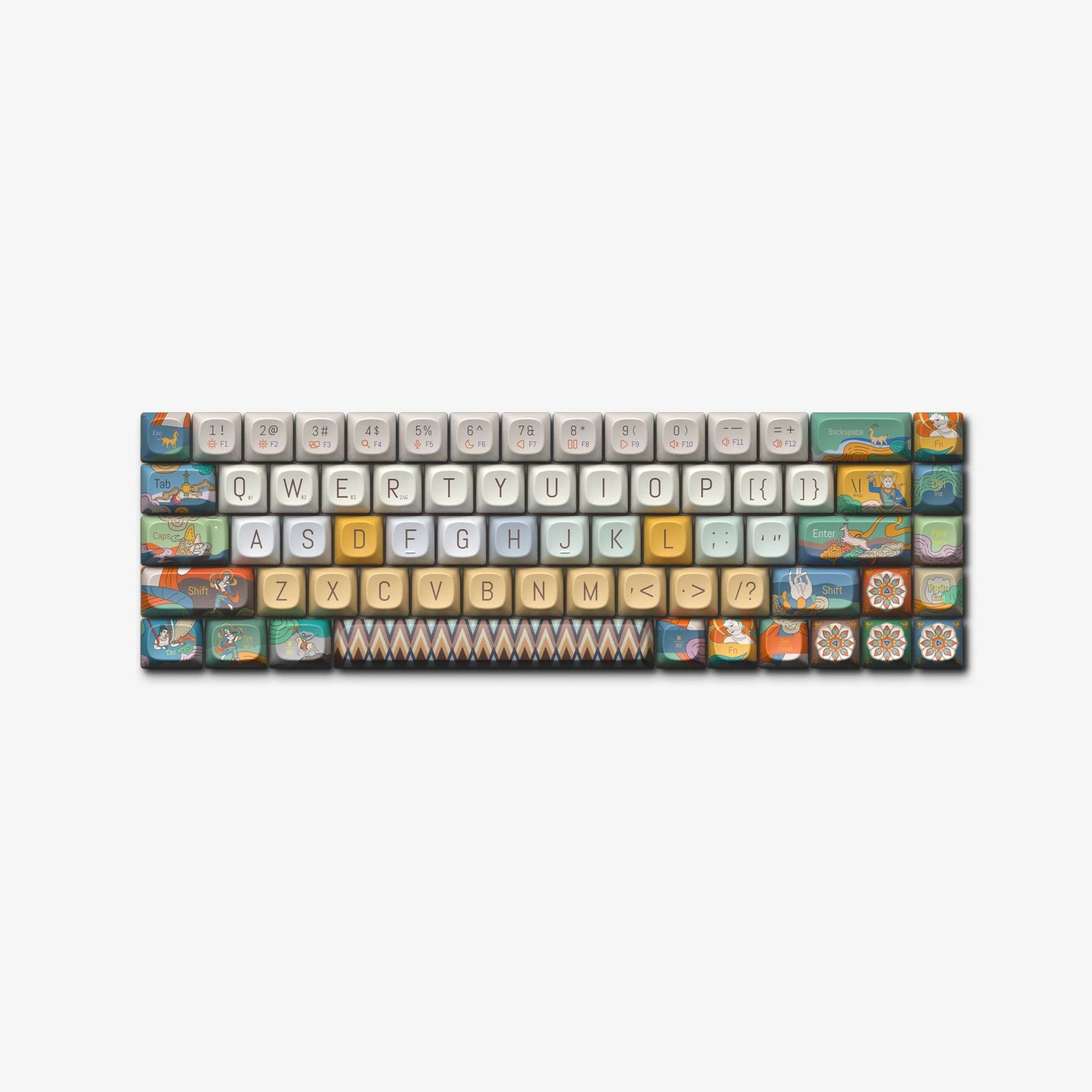 Celebrate the rich heritage of Dunhuang art with our “Splendid Dunhuang” keycaps, a magnificent tapestry of religious and cultural expressions. The art reflects a fusion of Buddhist religious themes with Chinese, Indian, and Persian influences, showcasing a vibrant exchange of ideas and aesthetics along the Silk Road. These designs merge a fusion of Buddhist religious themes with Chinese, Indian, and Persian influences Dunhuang art. This set of keycaps showcases the historical depth and aesthetic beauty of Buddhist art from Dunhuang Art, making every keystroke a connection to ancient artistic excellence.